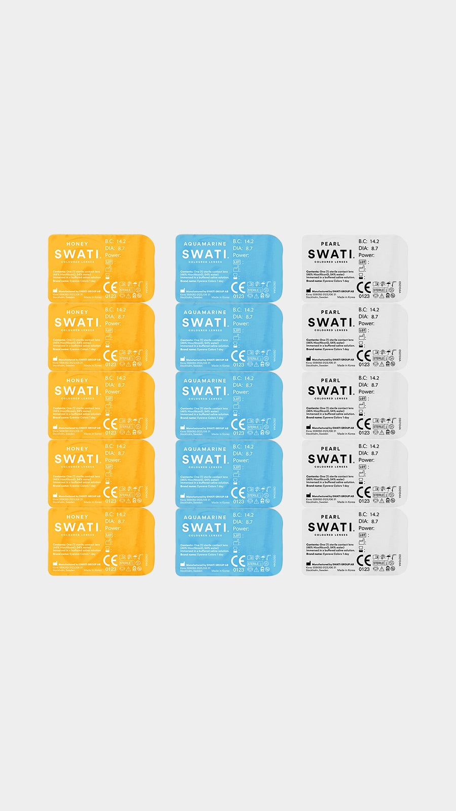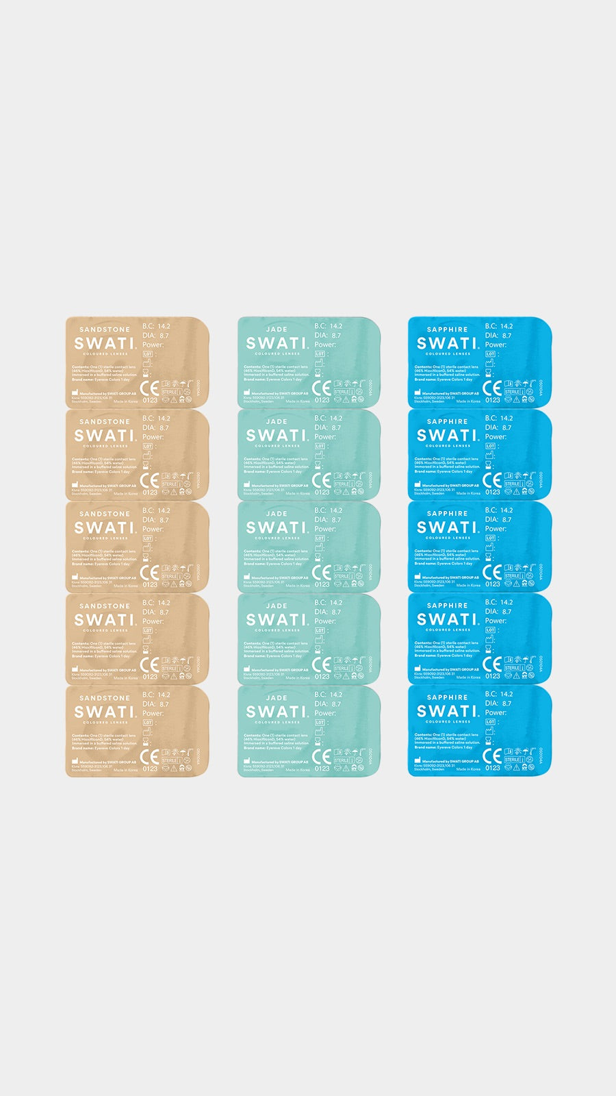 This material was chosen to create a look as natural as possible. SWATI coloured lenses are manufactured to international safety standards and are just as safe as any conventional lenses you buy at the pharmacy. The 6-months lenses validity begins from the date you open them and are available with or without power.