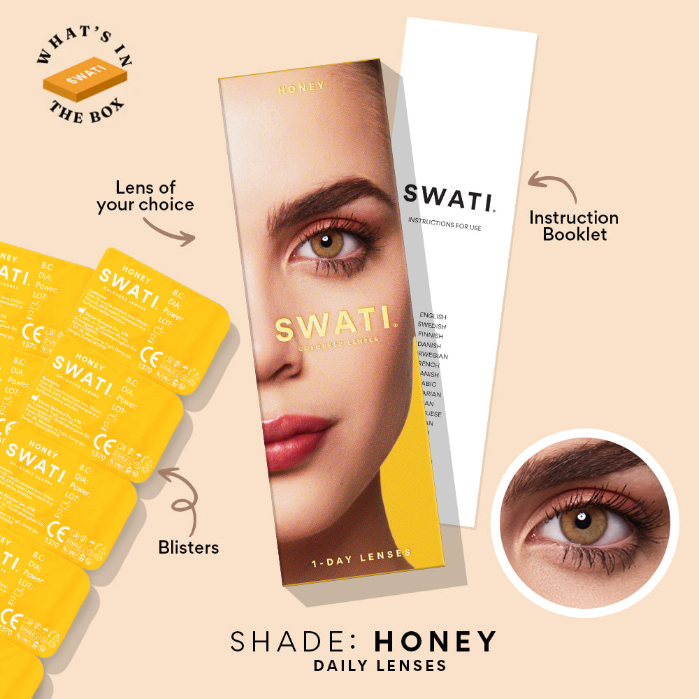 This beautiful warm hazel brown tone shade will give your natural eyes a luscious honey look. It can change your dark eye colour to the most natural-looking bright hazel brown eyes with a soft limbal ring.